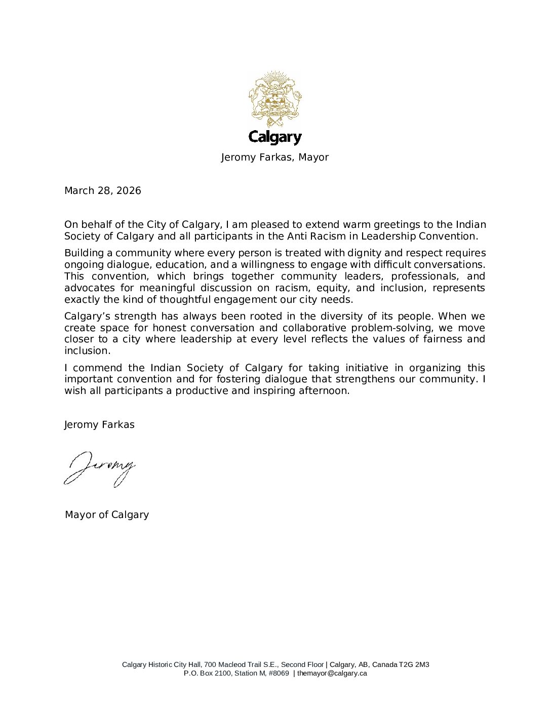 True leadership by Indian Society of Calgary